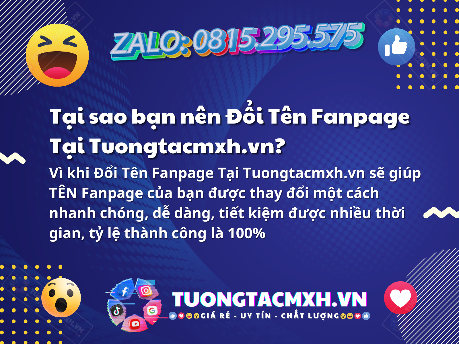 Hiểu được những khó khăn về việc đổi tên fanpage Facebook trên, chúng tôi (Tuongtacmxh.vn) ra mắt dịch vụ đổi tên fanpage Faceook giá rẻ nhằm giúp cho fanpage của bạn có một cái tên ưng ý với mục đích sử dụng.